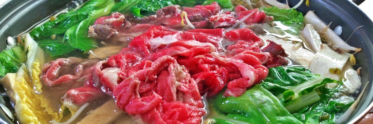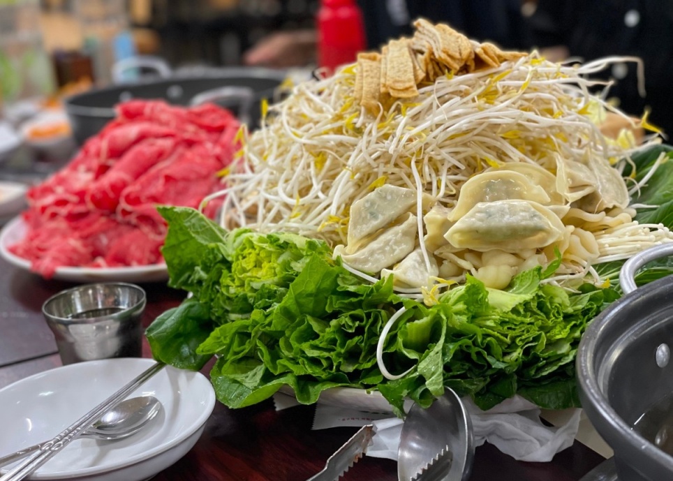 신선한 채소와 부드러운 소고기를 육수에 익혀 먹는 샤브샤브는