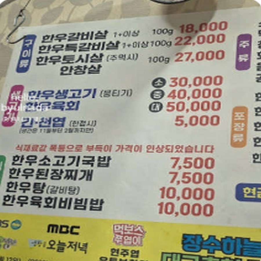 메뉴 : 한우육회,생고기 한우국밥, 육회비빔밥